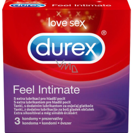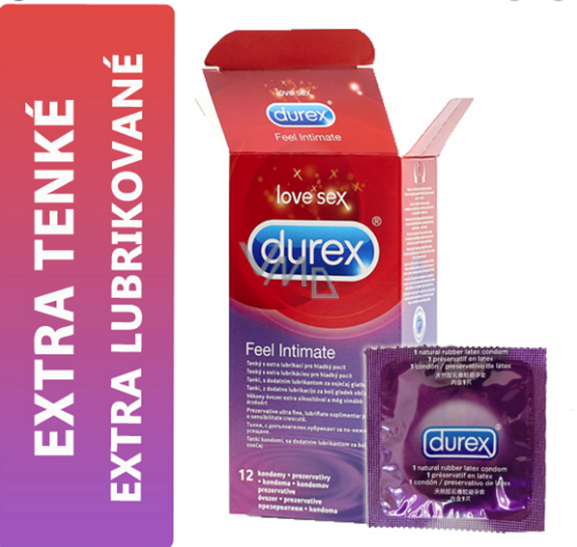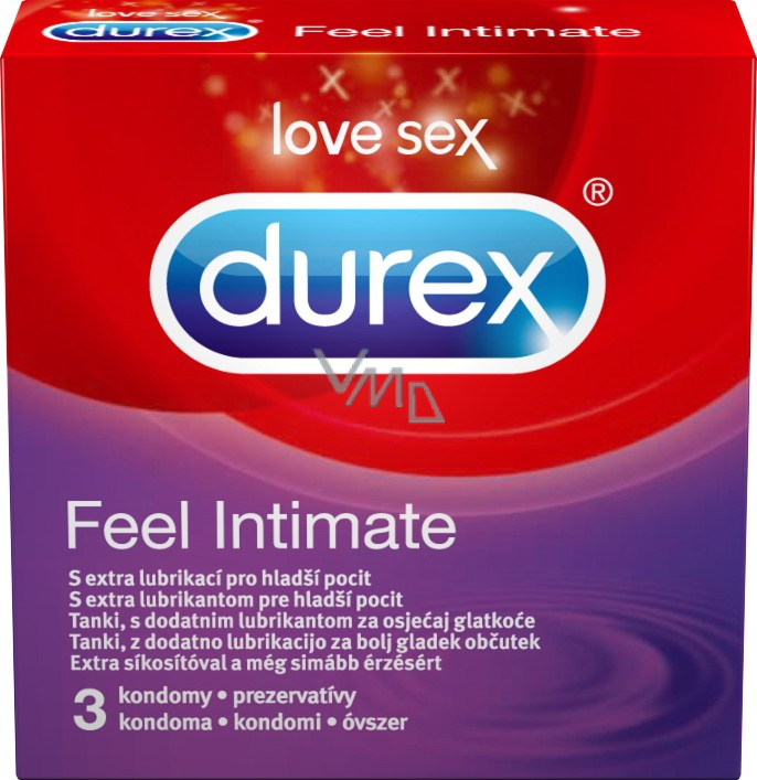Durex Feel Intimate - dříve pod názvem Elite. Tenký, s extra lubrikací pro hladší pocit. Easy-on tvar, zakončený rezervoárem, pro pohodlí a dokonalou přilnavost. Průhledné kondomy z přírodního kaučukového latexu.