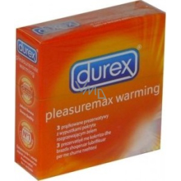 Durex Pleasuremax - kondom s jedinečně umístěným vroubkováním a výstupky. Obsahuje Warming lubrikant, který příjemně zahřívá a stimuluje tak oba dva partnery. Vyroben z přírodního kaučukového latexu. Lubrikován nespermicidním lubrikantem obsahující Zeus Odour Masker, který překryje zápach latexu.