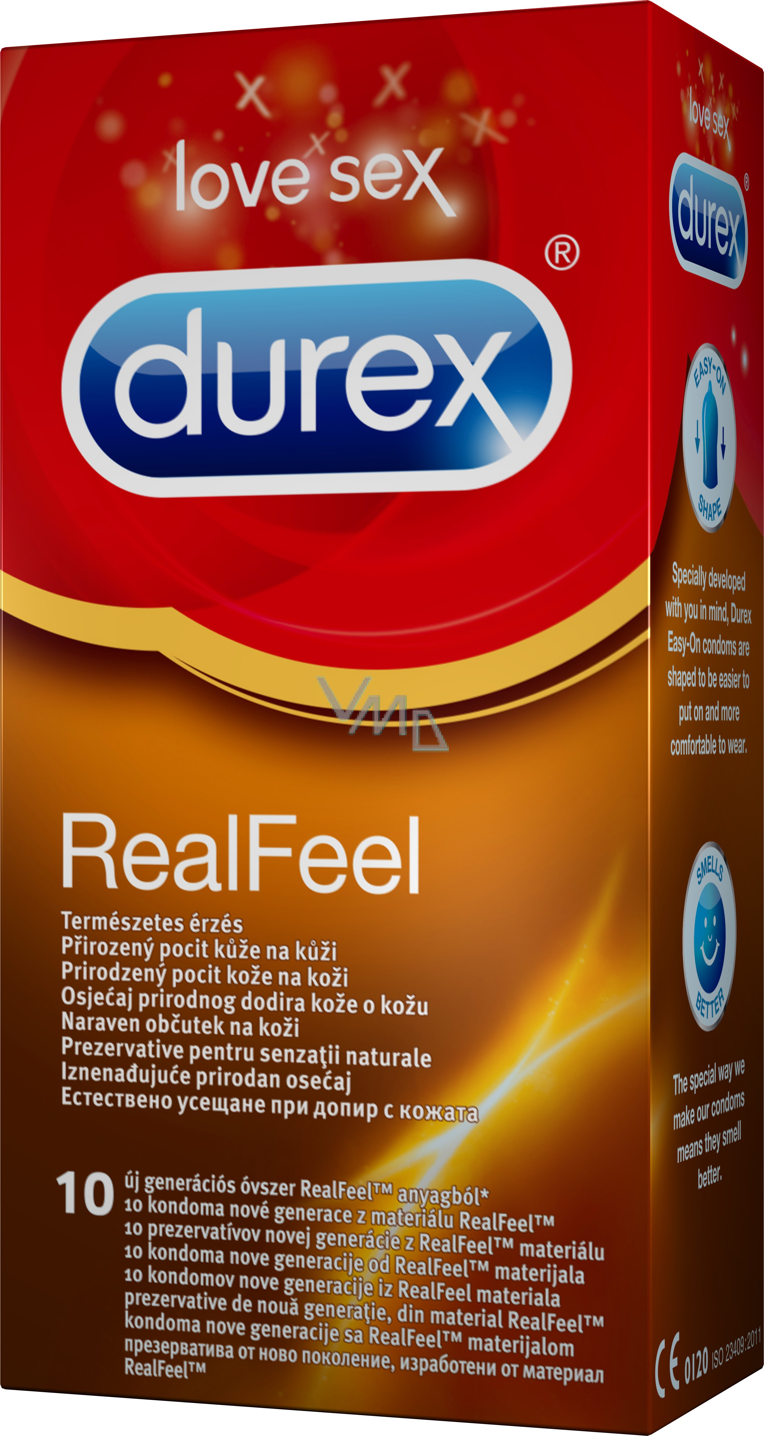 Nový revoluční kondom na trhu. Vyrobený z technicky pokročilého materiálu RealFeelTM. Zprostředkovává přirozenější pocit pro oba partnery, pocit kůže na kůži. Má patentovaný Durex Easy-onTM tvar, díky kterému se kondom lépe nasazuje a lépe sedí. A jako všechny kondomy Durex, nejen, že zachovává mezinárodně stanovené standardy bezpečí a kvality, dokonce je i předčí.