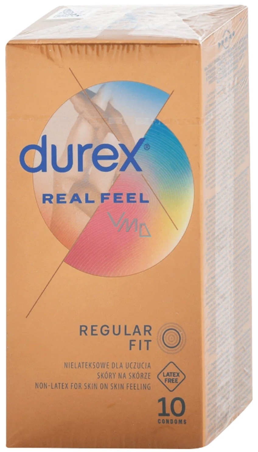 Gładkie kondomy, kształt Easy-on dla łatwiejszego zakładania, zakończone zbiornikiem. Kondomy Durex real feel są wyprodukowane bez użycia lateksu i zapewnią Ci najlepszą długotrwałą ochronę oraz uczucie komfortu.