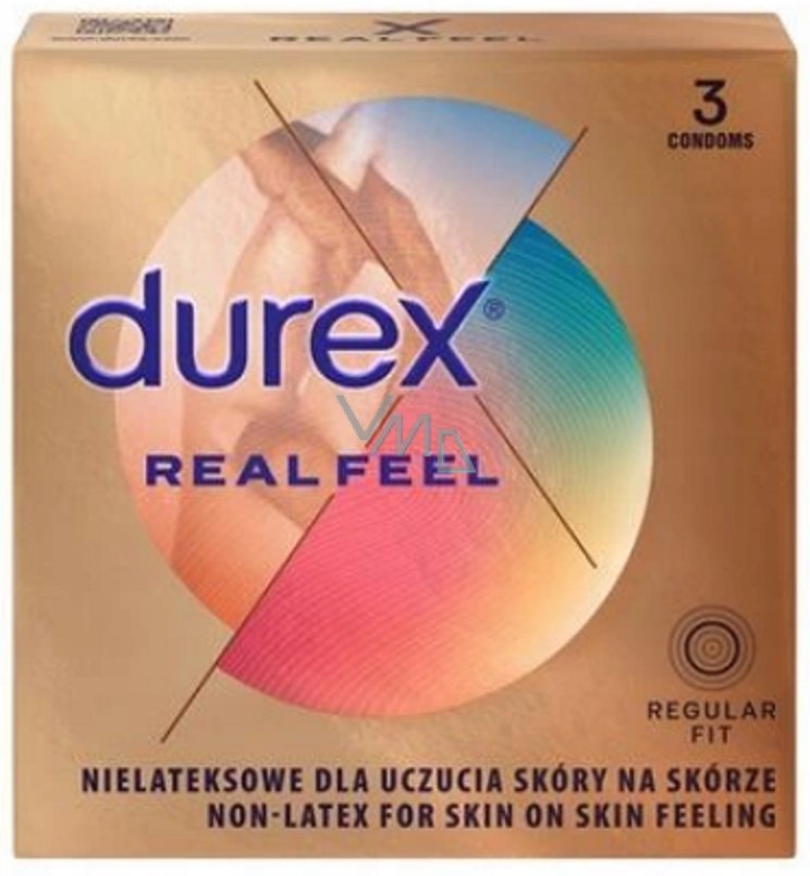 Durex Real Feel kondom bezlateksowy dla naturalnego uczucia skóry na skórze, nominalna szerokość: 56 mm 3 sztuki