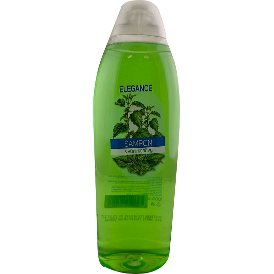 Wysokiej jakości szampon od czeskiego producenta Elegance o zapachu pokrzywy skutecznie myje włosy i nadaje im błyszczący blask.