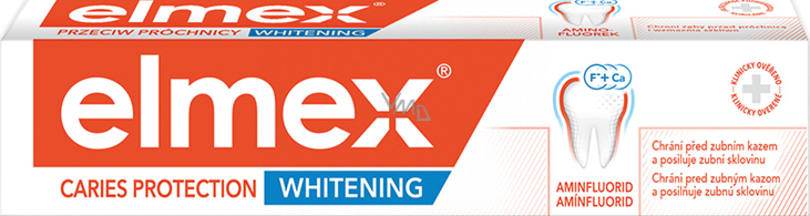 Pasta do zębów Elmex Ochrona przed próchnicą Wybielająca z Fluorem z wysoko skutecznym aminofluorkiem remineralizuje szkliwo zębów i chroni zęby przed powstawaniem próchnicy. Podczas szczotkowania szybko rozkłada się po całej powierzchni zębów, ułatwia wnikanie wzmacniających minerałów do szkliwa i czyni je bardziej odpornymi na tworzenie się próchnicy.