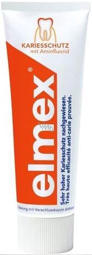 Elmex chrání a mineralizuje zuby vysoce účinnou látkou-aminofluoridem. Rychle se rozptyluje na zubním povrchu, podporuje pronikání minerálů do zubní skloviny a činí ji odolnější před zubním kazem.
