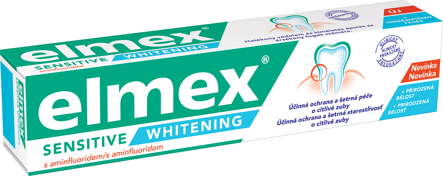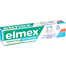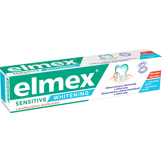 Pasta do zubów Elmex Sensitive Whitening z aminofluorkiem tworzy trwałą warstwę ochronną, która chroni przed bolesnymi bodźcami i próchnicą w okolicy szyjki zęba. Specjalna formuła delikatnie usuwa plamy i przywraca naturalną biel Twoich zębów. Zapytaj swojego dentystę. Nieodpowiednie dla dzieci poniżej 7 roku życia.