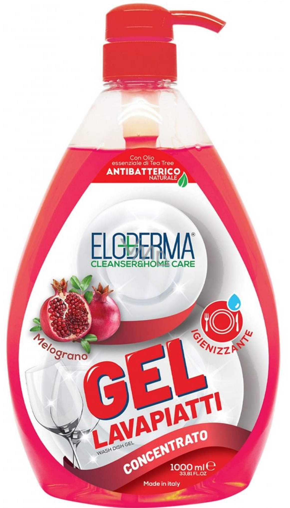 Eloderma Granátové jablko je čisticí prostředek určený pro ruční mytí nádobí. Složení je obohaceno o extrakt z čajovníku, který je známý pro své antibakteriální účinky. Extrémně účinné mytí i té nejodolnější špíny/mastnoty/připálených zbytků jídla, které dodává nádobí spoustu lesku. Šetrný k pokožce.