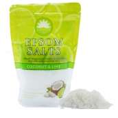 Kokos i Limonka. Relaksująca sól do kąpieli z naturalnym magnezem (siarczan magnezu) i olejkami eterycznymi z kokosu i limonki.