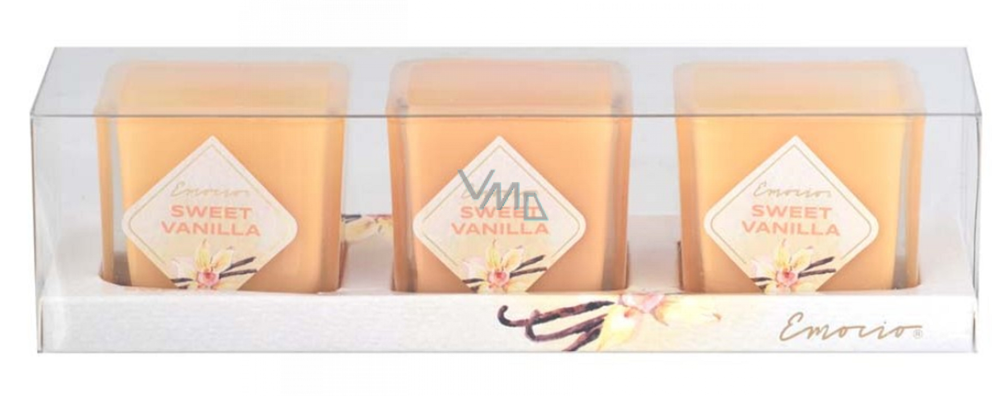 Emocio Sweet Vanilla vonná svíčka sklo 51 x 51 x 52 mm 3 kusy