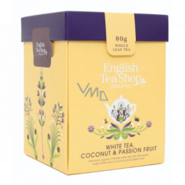 Sypaný bílý čaj s kokosem a mučenkou neboli passion fruit od značky English Tea Shop v bio kvalitě vás příjemně překvapí svou tropickou a nezaměnitelnou sladkou chutí. Díky obsahu teinu Vám čaj dodá energii a elán do vašeho dne. Je vhodný i pro chvíli relaxace a odpočinku. Bílý čaj má lahodnou čistou chuť a obsahují antioxidanty, které zpomalují stárnutí. Má jemně zelenou barvu a velmi lehkou a svěží chuť, která má povzbuzující účinky. Bílý čaj se zpracovává z mladých nerozvinutých lístků, které se suší na slunci.