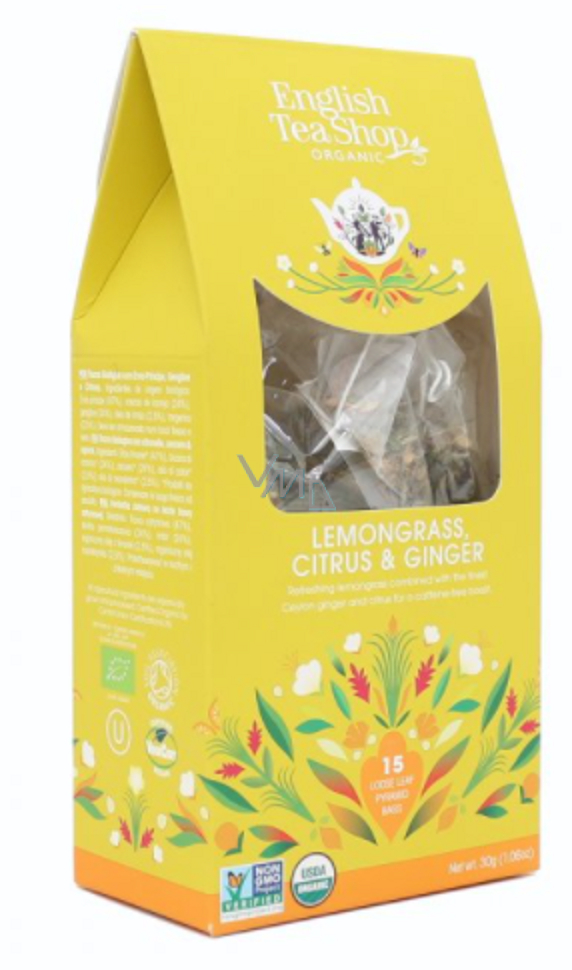 English Tea Shop Bio Citrónová tráva, Zázvor a Citrusy 15 kusů bioodbouratelných pyramidek čaje, 30 g