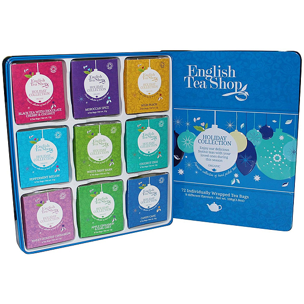 Luxusní plechová kazeta Modré ozdoby ozdoby v bio kvalitě je skvělým dárkem pro vaše blízké. Díky kombinaci čajů, bylin a koření vás potěšení šálek výborného čaje a navodí příjemnou vánoční atmosféru. Užijte si chvilku jen pro sebe. Plechová kazeta Modré ozdoby od značky English Tea Shop obsahuje kvalitní čaje v bio kvalitě. Sada je vhodná jako dárek pro vaše blízké a pro milovníky čaje. Čaje jsou baleny v krásný a praktických pyramidkách, tudíž si je můžete vychutnat.