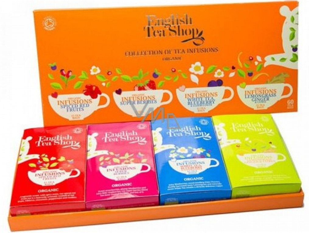 Dárková kolekce Super Tea od značky English Tea Shop obsahuje kvalitní ovocné čaje v bio kvalitě. Sada obsahuje 60 sáčků nejoblíbenějších ovocných čajů. Sada je určena pro všechny milovníky ovoce a čajů, hlavně pro ty, kteří rádi ochutnávají různé druhy čajů.
