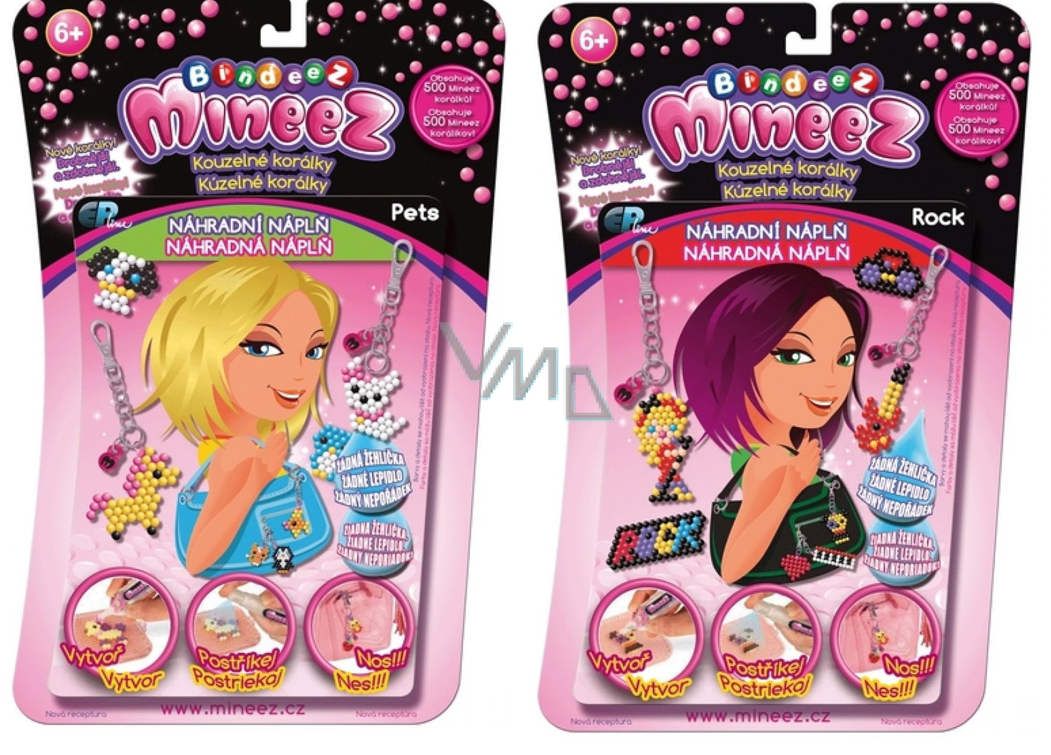 Bindeez představuje novinku - Bindeez Mineez korálky! Drobnější a zdobnější! Vyrob si náramek, náhrdelník nebo přívěsek! Stačí jen hotové dílo postříkat vodou a korálky drží!