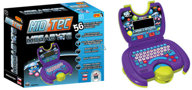Megabyte - první notebook pro děti rozvíjí dětskou představivost, motoriku a hravost. Dítě si vyzkouší, jak se píše na opravdovém počítači a vyzkouší si i pohyb počítačovou myší.