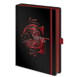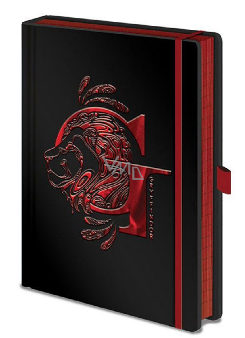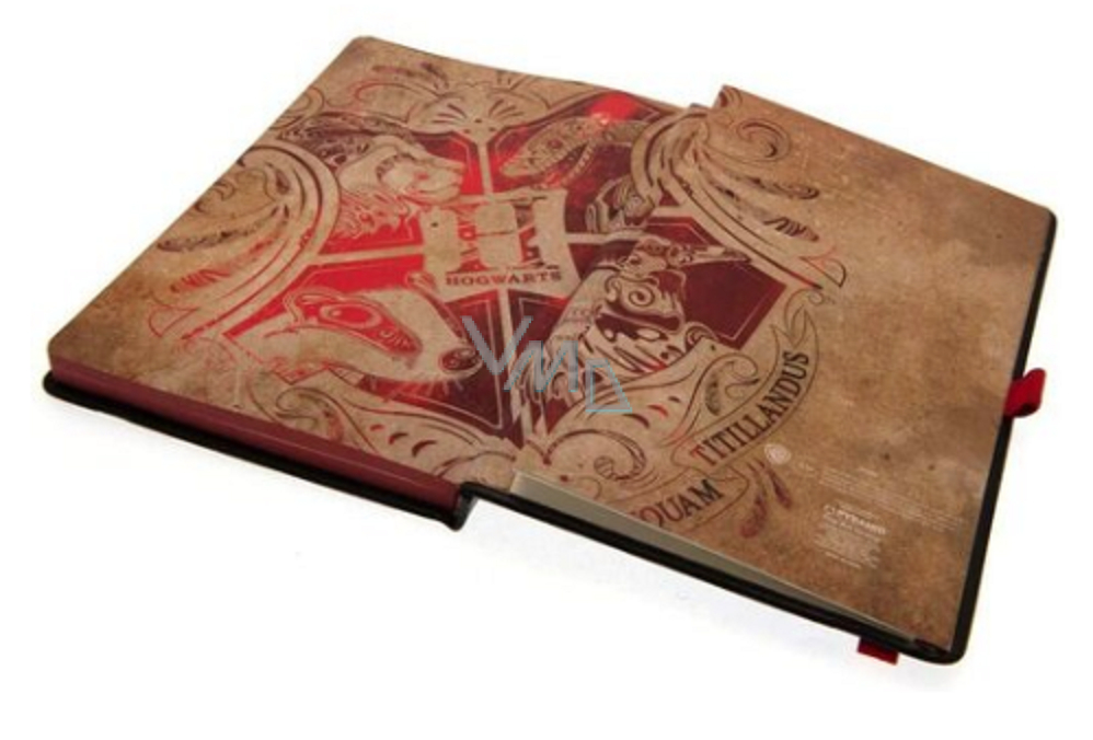 Hezký zápisník v lesklých pevných deskách černé barvy, s červeným symbolem koleje Nebelvír, bude užitečným společníkem všem studentům na bradavické škole čar a kouzel příběhů Harry Pottera. Zápisník je linkovaný, zavírá se pomocí gumové stuhy a součástí je také úchyt na tužku.
