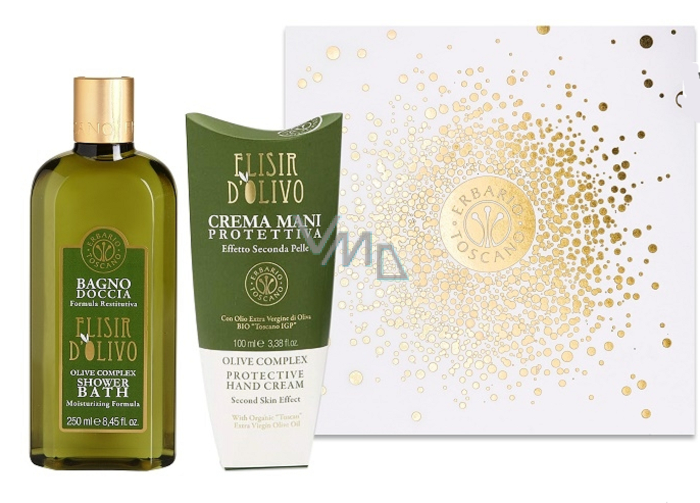 Erbario Toscano Olivový olej sprchový gel 250 ml + krém na ruce 100 ml, luxusní kosmetická sada