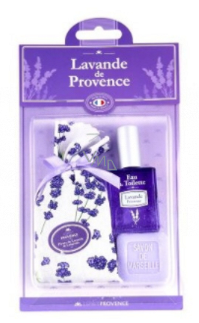 Sada obsahuje šetrně čistící mýdlo, vonný pytlíček a miniaturu toaletní vody. Ať už se rozhodnete darovat set svým nejbližším nebo jej využijete při cestování, potěší vás zklidňující vůně levandule, která odbourává stres a napomáhá lepšímu spánku.