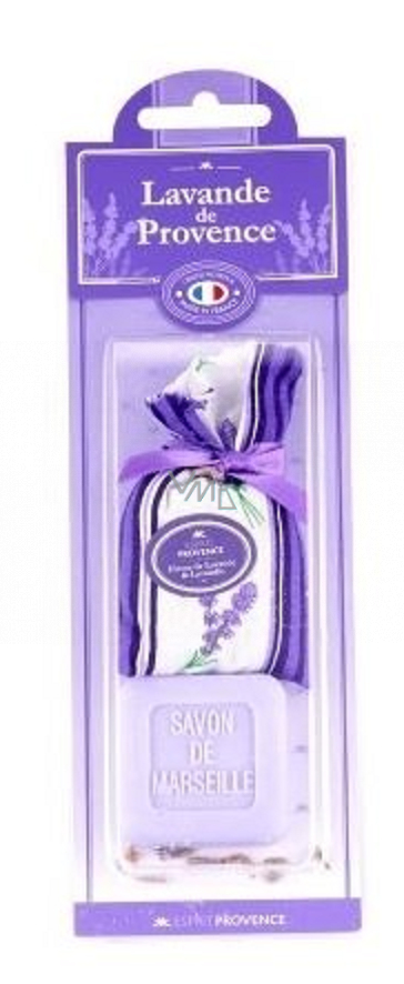 Esprit Provence Levandule toaletní mýdlo 25 g + levandulový vonný pytlík s pruhy, kosmetická sada pro ženy