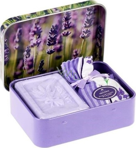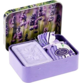 Esprit Provence Levandule toaletní mýdlo 60 g + levandulový vonný pytlík + plechová krabička s obrázkem levandule, kosmetická sada pro ženy