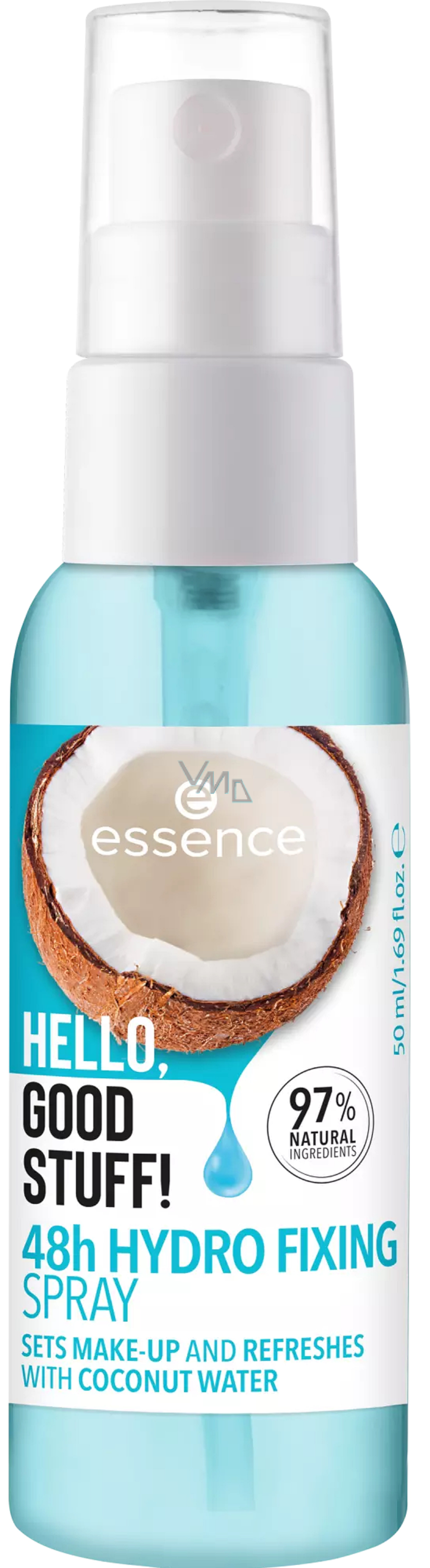 Spray do makijażu, który rewitalizuje i nawilża jednocześnie: spray HELLO, GOOD STUFF! 48h Jest wzbogacony o wodę kokosową i zapewnia skórze nawilżenie aż do 48 godzin. Spray można stosować kilka razy dziennie – jako przypływ świeżości w podróży. Zawiera 97 % składników pochodzenia naturalnego i jest testowany dermatologicznie.