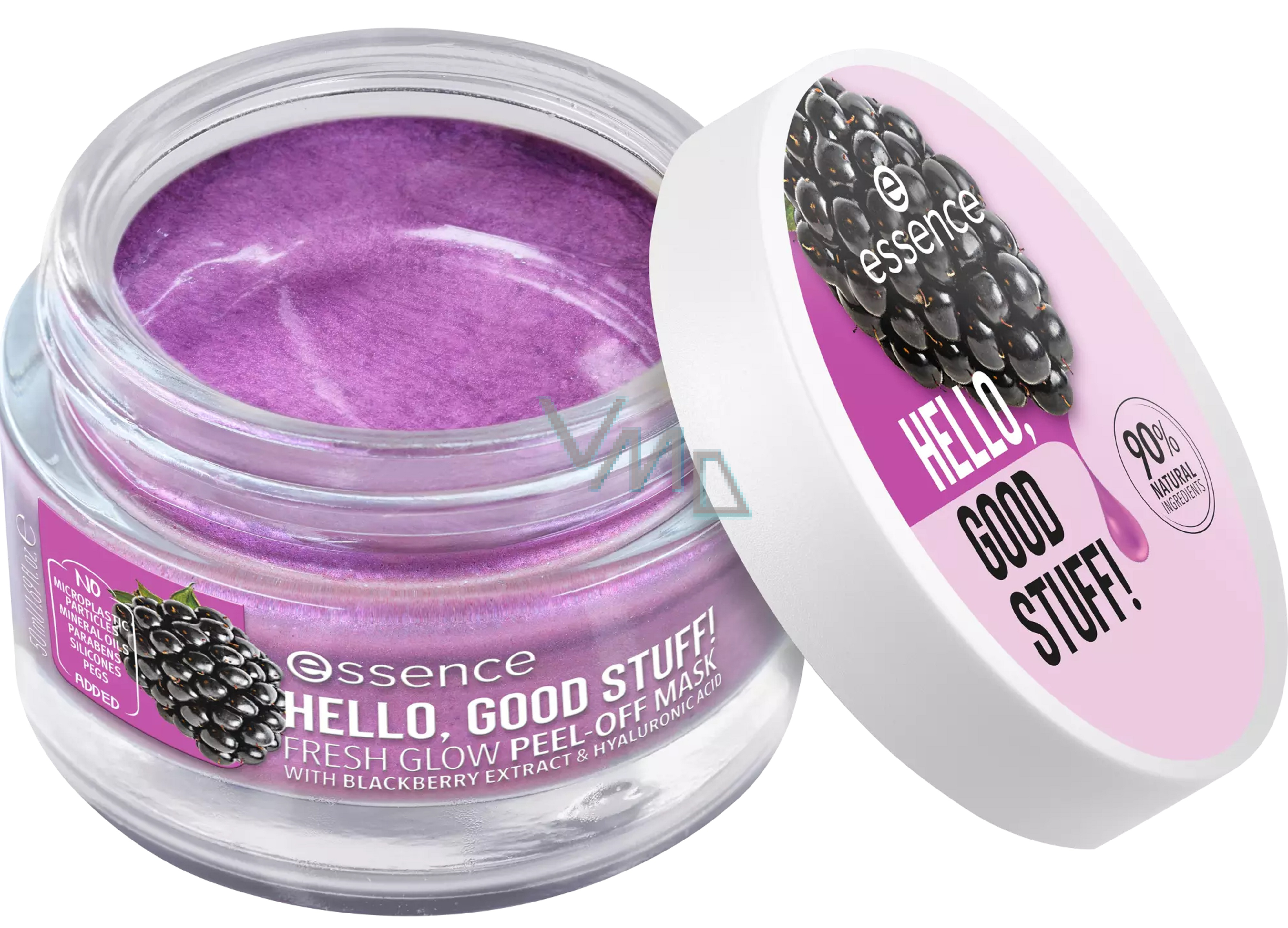 HELLO, GOOD STUFF! slupovací maska FRESH GLOW rozzáří vaši pleť. Její gelová textura je obohacena o ostružinový extrakt a kyselinu hyaluronovou, které vyživují a hydratují pokožku. Po zaschnutí vytvoří na pokožce film a poté se snadno sloupne. Výsledek: viditelně vyhlazené póry, hladší vzhled pleti a zdravý svěží jas. Obsahuje 90 % přírodních složek a je dermatologicky testována.