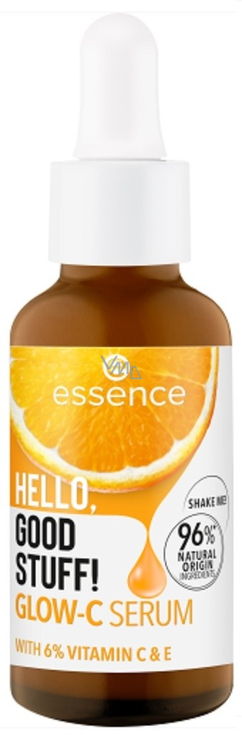 Sérum Hello, good stuff! Glow-C od essence ma lekką mleczną teksturę, szybko się wchłania i pozostawia skórę promienną i świeżą. Zawiera 6% fosforan askorbylu sodu – delikatny pochodny witaminy C, który jest idealny do wrażliwej skóry skłonnej do trądziku – a także witaminę E i odrobinę ekstraktu z pomarańczy. Pomaga chronić skórę przed wolnymi rodnikami dla bardziej jednolitego wyglądu. Serum jest odpowiednie dla większości typów skóry. Podaruj swojej skórze codzienną dawkę szczęścia!