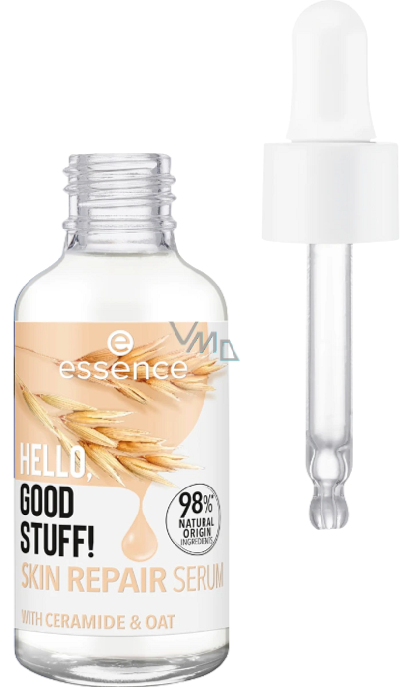 Serum Hello, Good Stuff! Skin Repair od Essence jest idealnym pomocnikiem w pielęgnacji twarzy. Serum jest wzbogacone w ceramidy i owies i można je łatwo nałożyć na skórę pipetą i delikatnie wmasować. Preparat pielęgnacyjny również szybko się wchłania i jest przyjemny na twarzy.