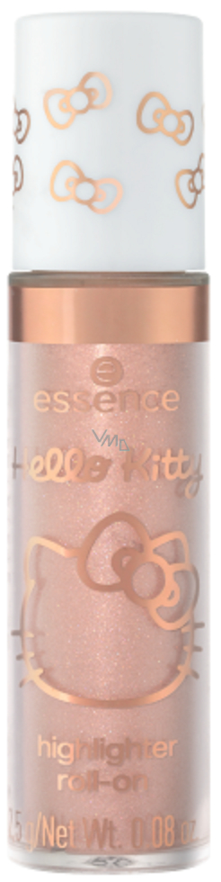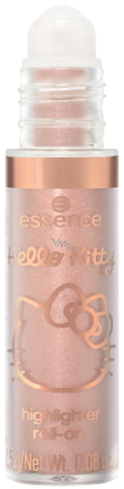 S Hello Kitty Roll-On rozjasňovačem od essence v barvě 01 Spread The Sunshine od essence se tváře lesknou úchvatným růžovým zlatem. Lehké složení se snadno nanáší díky kuličkovému aplikátoru. Tekutá textura usnadňuje míchání. Pro ohromující a třpytivý make-up.