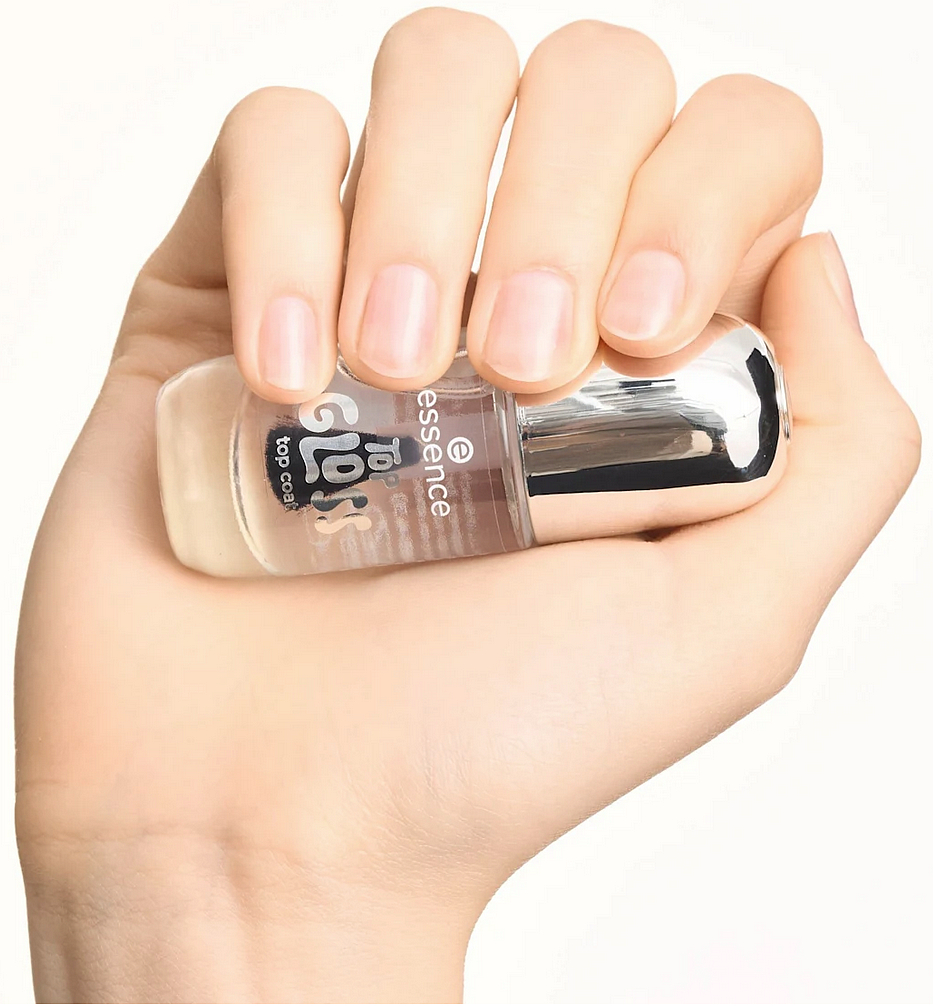 lakier kryjący essence TOP GLOSS to idealny wybór dla długotrwałej, błyszczącej i doskonale zadbanej mani, która podkreśli każdy styl.