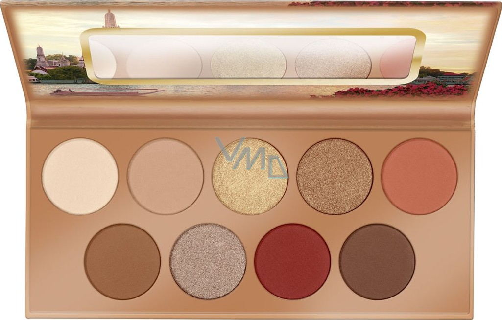 Vítejte v Bangkoku! Úžasné barvy v paletce jsou inspirovány touto pulsující metropolí. Devět odstínů v tělových, bronzových a červených barvách nabízí sametově matné, jemně třpytivé a metalické efekty - a spoustu pigmentace. Papírové balení se zcátkem je navíc šikovné i na cesty.