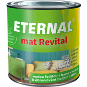 ETERNAL mat Revital to uniwersalna jedwabista matowa farba na wodnej bazie do użytku wewnętrznego i zewnętrznego, przygotowana ze specjalnej dyspersji akrylowych kopolimerów, pigmentów, wypełniaczy i dodatków. Tworzy stosunkowo twarde, elastyczne matowe powłoki o wysokiej odporności na warunki atmosferyczne oraz doskonałej odporności na blokowanie, nawet w wyższych temperaturach. Wyróżnia się bardzo dobrą kryjącością, dobrym rozlewaniem, szybkim schnięciem i doskonałą przyczepnością nawet do starych powłok syntetycznych i olejowych. ETERNAL mat Revital spełnia warunki normy ČSN EN 71 część 3 Bezpieczeństwo zabawek Migracja niektórych pierwiastków.