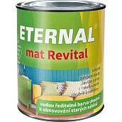 ETERNAL mat Revital to uniwersalna jedwabiście matowa farba wodna do użytku wewnętrznego i zewnętrznego, przygotowana z specjalnej sieciującej dyspersji kopolimerów akrylowych, pigmentów, wypełniaczy i dodatków. Tworzy dość twarde, elastyczne matowe powłoki o wysokiej odporności na warunki atmosferyczne i doskonałej odporności na blokowanie, nawet przy wyższej temperaturze. Charakteryzuje się bardzo dobrą kryjnością, dobrym rozlewaniem, szybkim schnięciem i doskonałą przyczepnością, nawet do starych syntetycznych i olejnych powłok. ETERNAL mat Revital spełnia wymogi normy ČSN EN 71 część 3 Bezpieczeństwo zabawek Migracja niektórych pierwiastków.