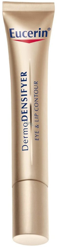 Eucerin Oční krém pro obnovu pevnosti pleti DermoDensifyer je speciálně vyvinutý pro citlivou pleť okolo očí a rtů. Obsahuje přírodní složky arctiin a Apiaceae peptidy, které stimulují a urychlují tvorbu kolagenu. Restrukturují tenký a křehký kolagen v silnější a hustší síť. Redukují vrásky. Navíc zpevňují část mezi epidermis a dermis a podporují mikrocirkulaci v pleti a tím jí dodávají zářivější vzhled. Speciální UV ochrana SPF 15 a UVA filtry zabraňuje dalšímu předčasnému stárnutí pleti. Oftalmologicky testováno pro bezpečnost a kožní snášenlivosti.