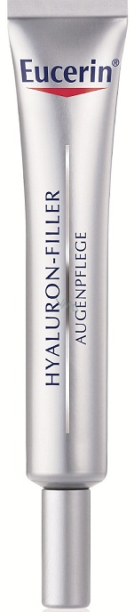 Eucerin Intenzivní vyplňující oční krém proti vráskám Hyaluron-Filler byl vyvinut speciálně proti vějířkovitým vráskám, které se tvoří v citlivé oblasti okolo očí. Složení s kombinací vysoko- a nízkomolekulární kyseliny hyaluronové účinkuje jak proti stávajícím, tak proti nově vznikajícím vráskám. Bioaktivní glycin saponin stimuluje vlastní tvorbu kyseliny hyaluronové v pleti. SPF 15 + UVA ochrana chrání před předčasným stárnutím a prohlubováním vrásek v oblasti okolo očí. Pleť vypadá viditelně hladší a mladší.