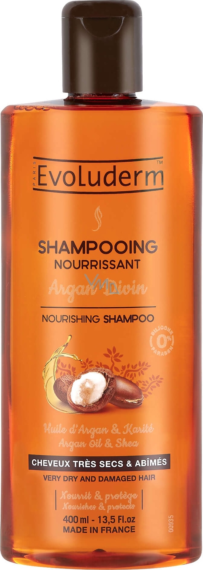 Evoluderm Argan Divin vyživující šampon pro velmi suché a poškozené vlasy s arganovým olejem 400 ml