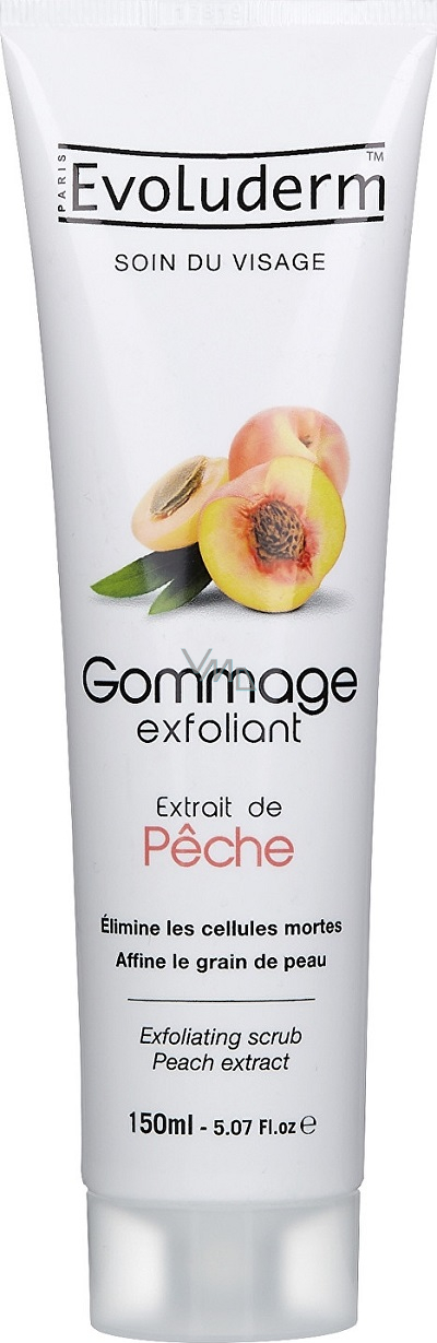 Evoluderm pleťový peeling s výtažkem z broskví a peelingovými meruňkovými zrníčky odstraňuje odumřelé buňky, čímž usnadňuje jejich obnovu. Složení bohaté na glycerin pleť hydratuje, sjednocuje a zanechává ji svěží a čistou.