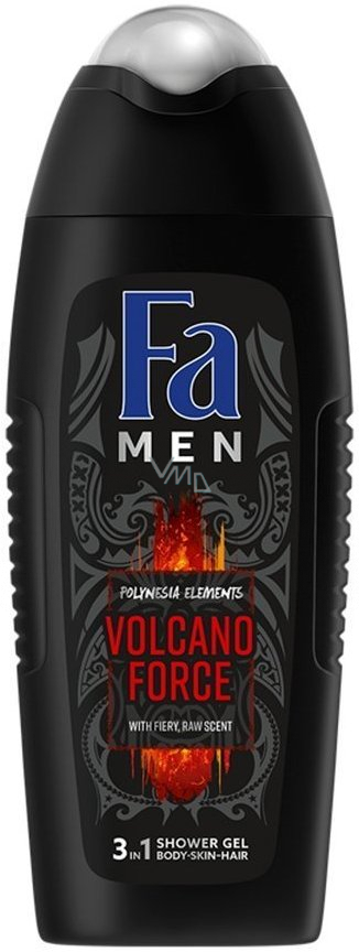 Fa Men Volcano Force 3v1 sprchový gel pro tělo, vlasy a obličej s vášnivou, drsnou vůní. pH vůči pokožce neutrální & dermatologicky testováno. Pánský sprchový gel Fa dodá Vašemu tělu povzbuzující svěžest a vůní. Probudí všechny Vaše smysly. Je vhodný pro mytí celého těla, obličeje i vlasů.