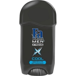 Fa Men Xtreme Cool je k dispozici jako deodorant ve spreji a tuhý deodorant a obsahuje molekuly stříbra. Nabízí 72hodinou ochranu před pocením a nepříjemným tělesným pachem.
