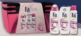 Značka Fa pokrývá hlavní kategorie tělové kosmetiky: deodorant, sprchový gel, pěna do koupele, mýdlo a dále i nové segmenty, jako je tělové Mléko a tekuté mýdlo.