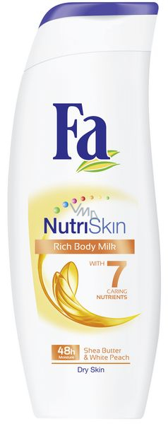 - Tělové mléko Fa NutriSkin s bambuckým máslem a bílou broskví – poskytuje 48hodinovou péči pro suchou pleť. Vyživující bambucké máslo pleť zklidňuje a pomáhá obnovovat její přirozenou vlhkost. Lehká, svěží vůně bílé broskve vás povzbudí. Toto tělové mléko nabízí intenzivní péči, která vydrží po celý den.