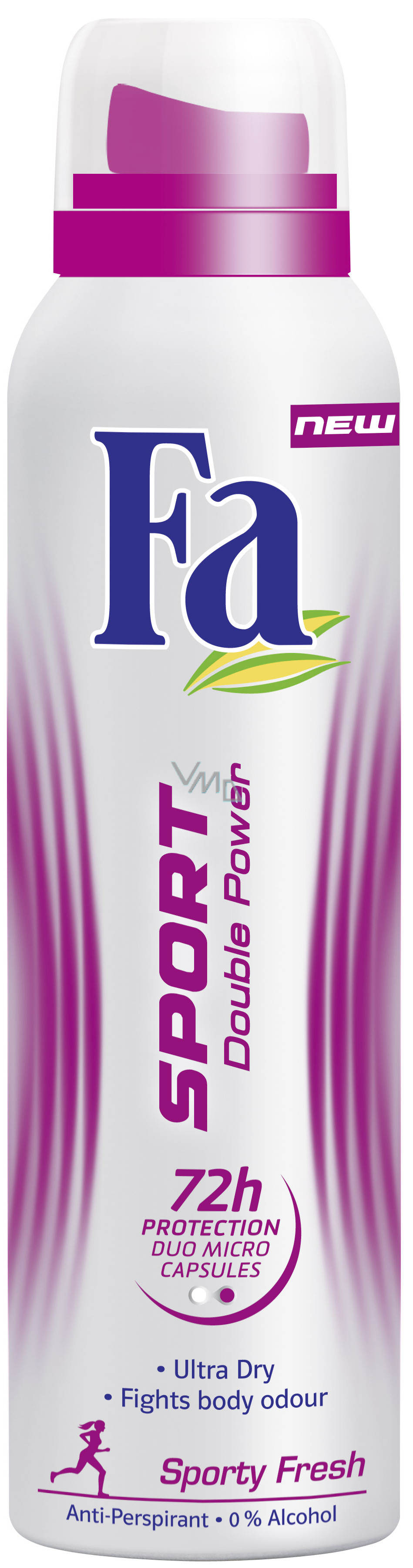 Objevte až 72hodinovou ultra silnou deo ochranu s antiperspirantem Fa Sport Double Power Sporty Fresh! Duo-mikrokapsle bojují proti tělesnému pachu a vstřebávají nadměrný pot.