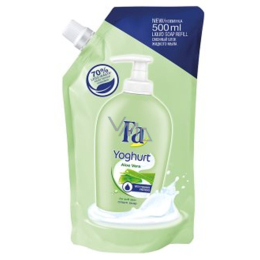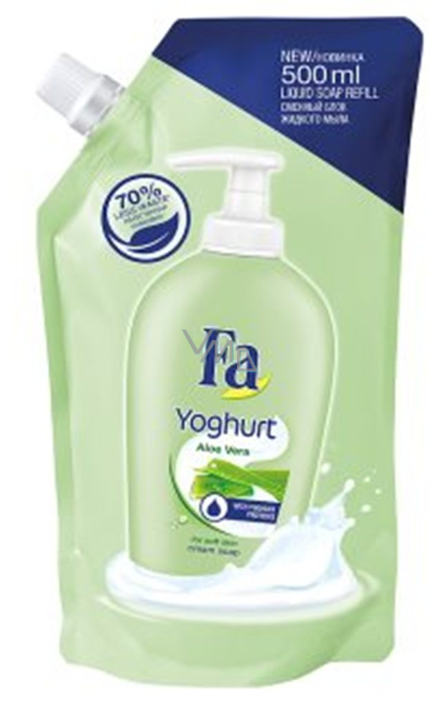 Objevte krémové mýdlo Fa Yoghurt Aloe Vera s jogurtovými proteiny, které zanechá pocit jemné pokožky vašich rukou. Pro pocit jemné pokožky. Vůči pokožce pH neutrální. Náhradní náplň - až o 70 % méně obalového odpadu v porovnání s 500 ml Fa tekutého mýdla ve 2 lahvičkách s pumpičkou (2 x 250 ml).
