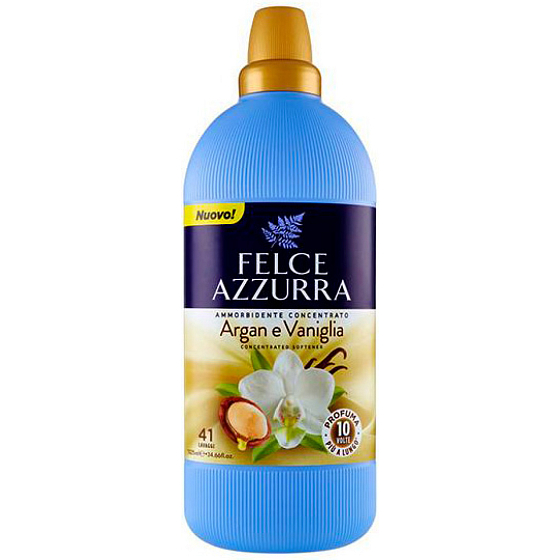 Wypróbuj skoncentrowany płyn do tkanin Felce Azzurra i zapewnij swoim ubraniom zapach, który utrzymuje się 10 razy dłużej (w porównaniu z standardowym płynem do tkanin). Ta unikalna formuła nadaje Twoim ubraniom niezapomnianą gładkość w intensywnym zapachu wanilii i arganu, dla długotrwałego zapachu i miękkości tkanin. Wydłużone działanie. Testowane dermatologicznie.
