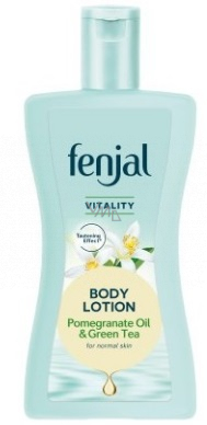 Tělové mléko Fenjal Vitality dodává pokožce chybějící hydrataci a výživu. Obsahuje extrakt ze zeleného čaje, který má bohaté hydratační účinky. Právě díky získané vlhkosti zůstane pokožka dlouhodobě příjemně uvolněná a přirozeně pružná. Po použití je pokožka vyživená a sametové hebká. Povzbuzující ovocná vůně zaručí mimořádný zážitek pro všechny vaše smysly.