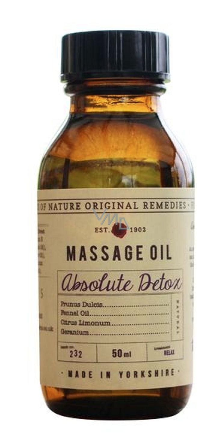 Fikkerts Absolute Detox masážní tělový olej s obsahem esenciálního oleje z fenyklu, citrónu, muškátu a olej ze sladkých mandlí 50 ml