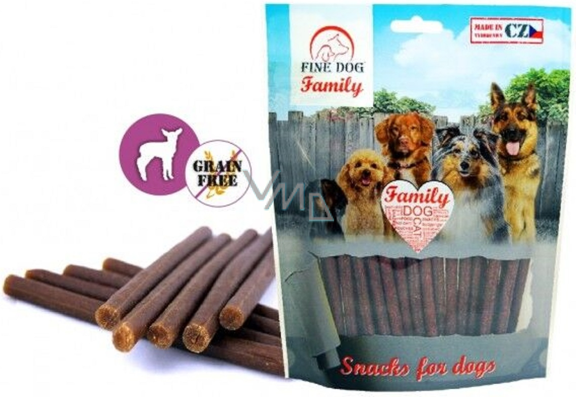 100 % naturalna jagnięca przekąska Fine Dog Family dla wszystkich ras psów. Elastyczne pałeczki są produkowane w Czechach, suszone gorącym powietrzem. Długość pałeczki wynosi około 13,5 cm, a średnica około 0,9 cm. Przekąska zawiera wysoką zawartość mięsa i służy jako nagroda podczas treningu. Receptura jest bezglutenowa. Nie zawiera sztucznych barwników, konserwantów i GMO.