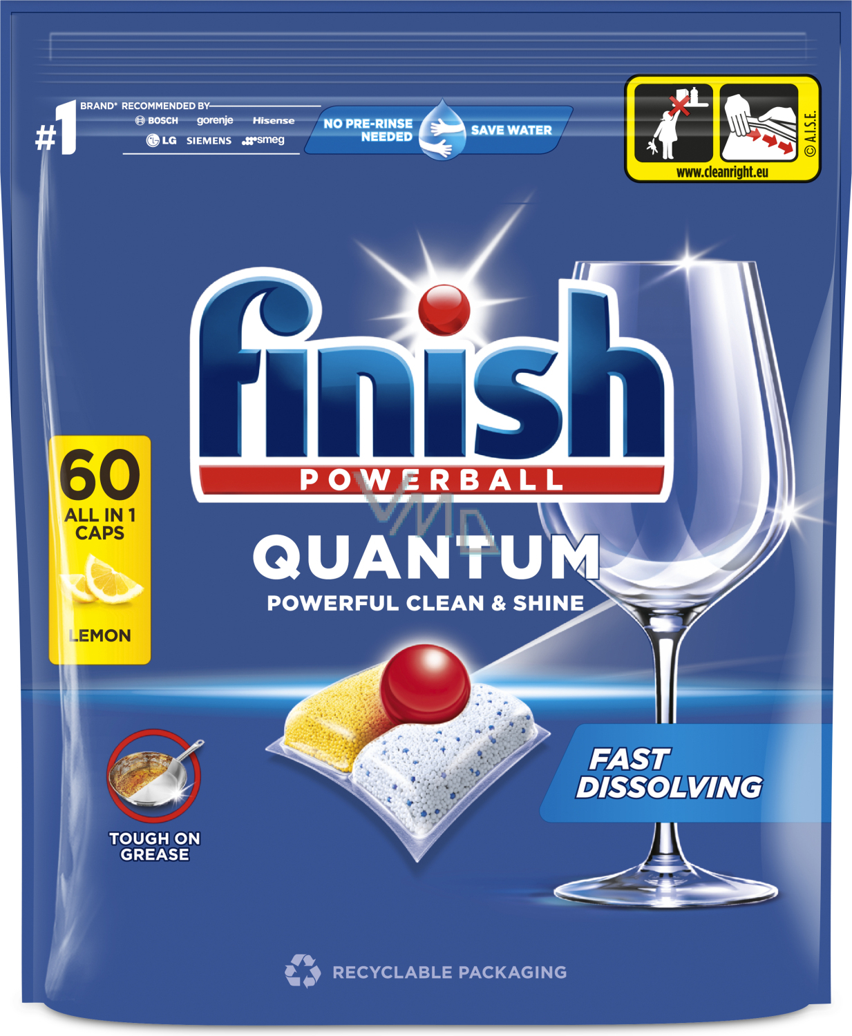 Kapsułki również zapewniają skuteczną ochronę zmywarki, filtra i zapobiegają osadzaniu się kamienia. Również usuwają resztki przypalonego jedzenia i nadają naczyniom olśniewający blask bez smug. Finish Quantum Ultimate działają również w niskich temperaturach.