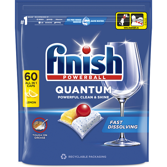 Finish Quantum Ultimate są żelowe tabletki do zmywarki, które są rekomendowane przez czołowych producentów zmywarek. Skutecznie usuwają zanieczyszczenia, plamy (kawa i herbata), osady i jednocześnie dbają o połysk sztućców i srebrnych elementów naczyń.