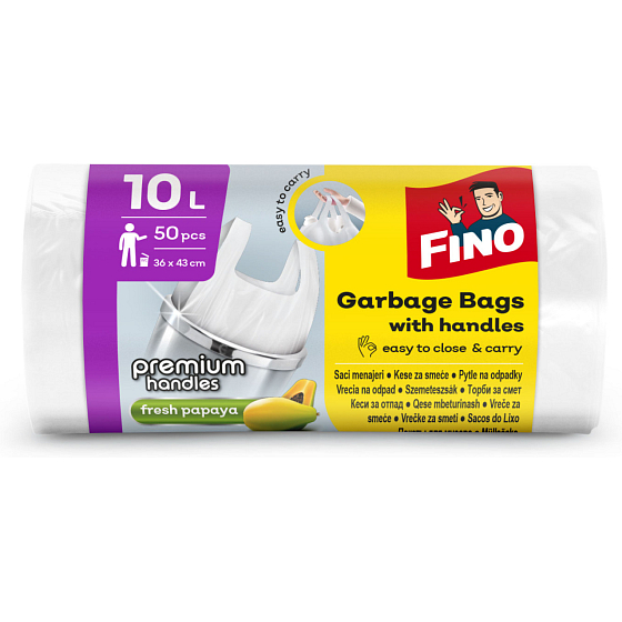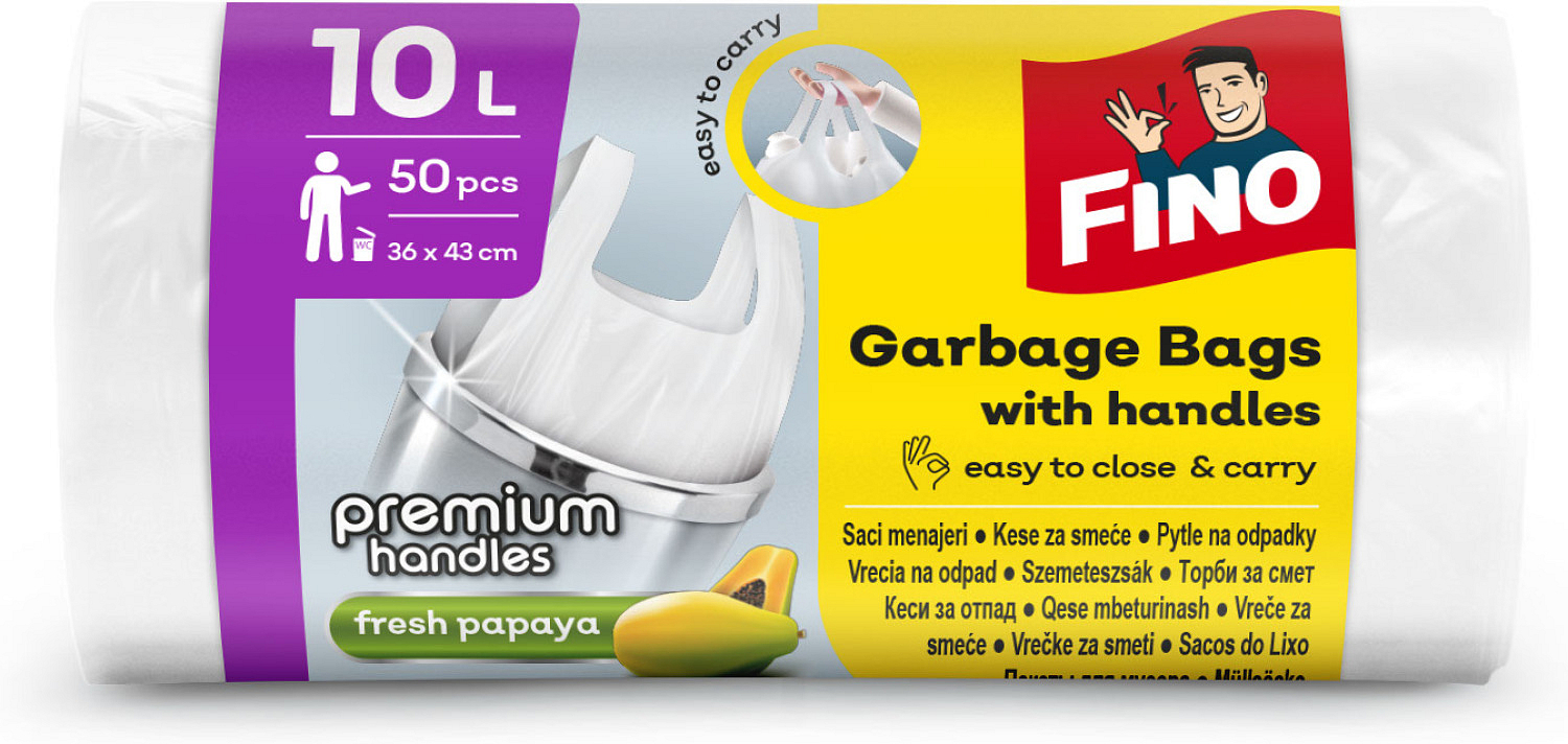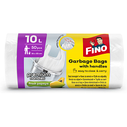 Fino worki na śmieci z uchami do łatwego manewrowania o objętości 10 l w opakowaniu po 50 sztuk, wymiary każdego worka to 36 × 44 cm, HDPE, grubość worków 6 mikronów. Worki możesz używać na odpady nie tylko w twoim gospodarstwie domowym, ale także w firmach, sklepach itd.