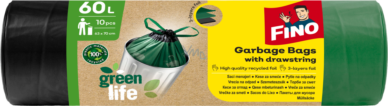 Fino Green Life recyklované PE zatahovací pytle na odpad, 63 × 72 cm, 60 l, 10 ks